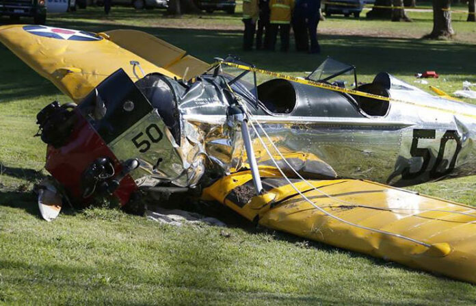 При экстренной посадке на поля для гольфа пострадал актер Харрисон Форд, находившийся за штурвалом военного тренировочного самолета США Ryan PT-22 Recruit времен Второй мировой войны.