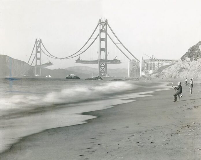 Строительство такой огромной конструкции продолжалось всего 4 года! Джозеф Строусс – разработчик проекта, известный архитектор Ирвинг Морроу был его консультантом, а Чарльз Альтон Эллис выполнил все математические вычисления. Но имя последнего не было внесено в табличку строителей моста, поскольку он имел плохие отношения со Строуссом.