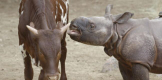 В зоопарке Сан-Диего носорог подружился с теленком