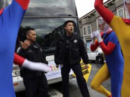 Танцующие протестующие блокируют автобус Google в Сан-Франциско