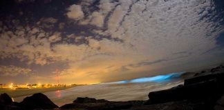 Невероятное зрелище – светящиеся голубые волны на калифорнийском побережье