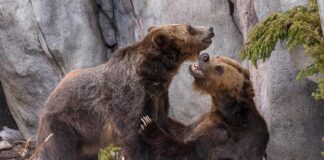 Медведи гризли резвятся на глазах посетителей зоопарка Сан-Диего