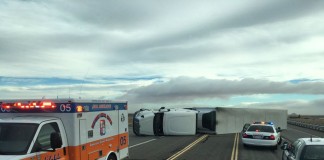Ветер опрокидывает большегрузы в пустыне Мохаве