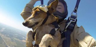 Такса совершила прыжок с парашютом вместе с хозяином
